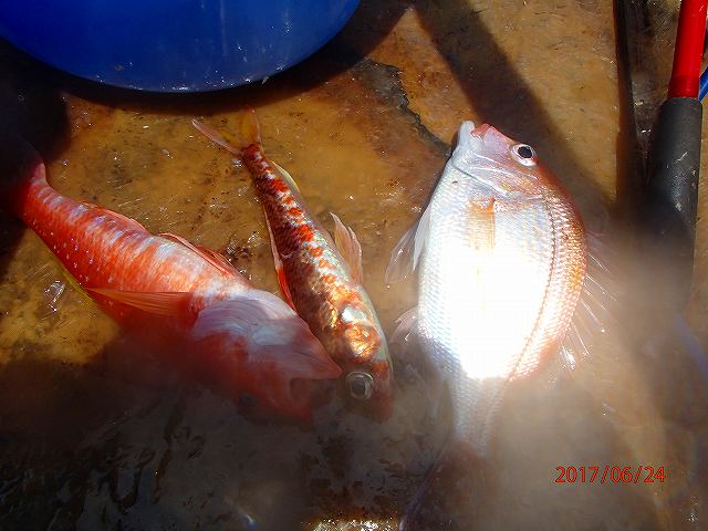 今月の釣果情報 大鯖の回遊は遅れている。 2017年6月24日 2020年8月31日 akihiro7 Facebook Twitter はてブ Pocket Feedly 6月24日(土) 於 熱海市網代 船宿 内田丸 午前六時30分~午後2時30分 大潮 一ヶ月半ぶりの釣行である。仕事に追われてやっとの思いで網代に来ることができた。梅雨の中休みで風もなく海は至って穏やかだった。 沖の定置網と多賀の中間地点で、水深60メートルから70メートルをいつものように流し釣りした。重り負荷40号、ハリス2号4メートルのカゴ釣りで三本針。干潮の11時頃から釣れ始め、潮変わりで甘鯛が続けて掛かった。 Facebook Twitter はてブ Pocket Feedly